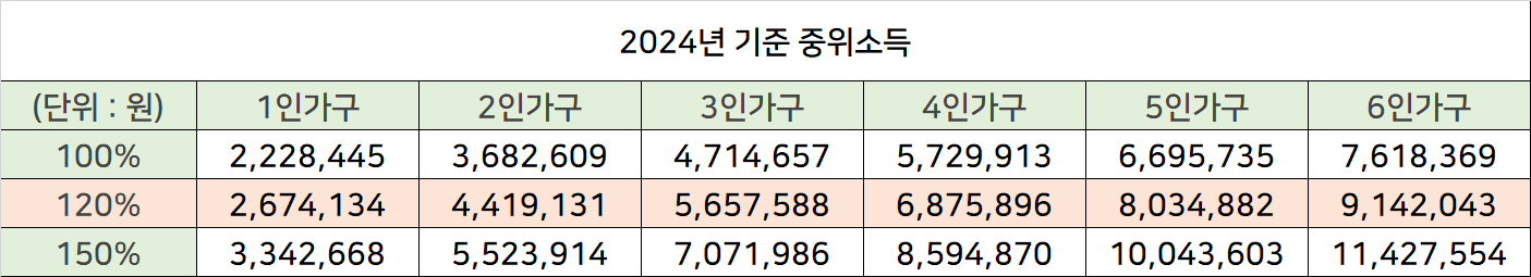 2023년 2024년 기준 중위소득표 참고